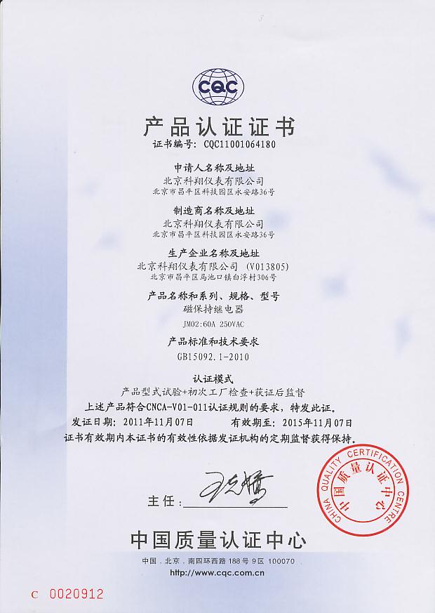 CQC认证证书