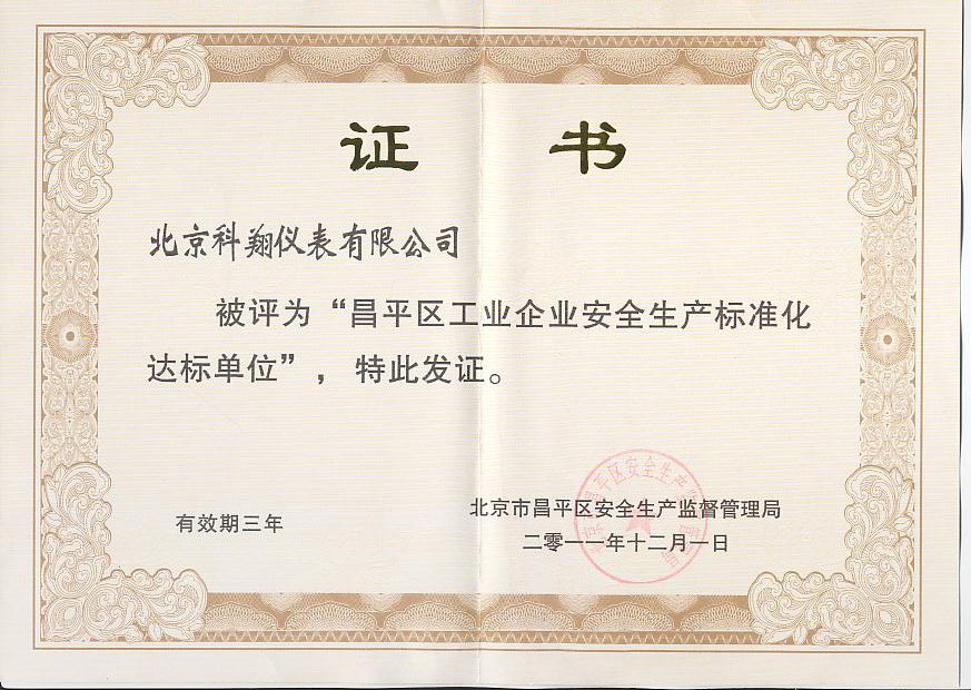 安全生产标准化-证书