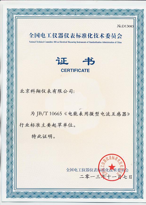 电流互感器行业标准起草证书-单位 [返回] 点击查看大图